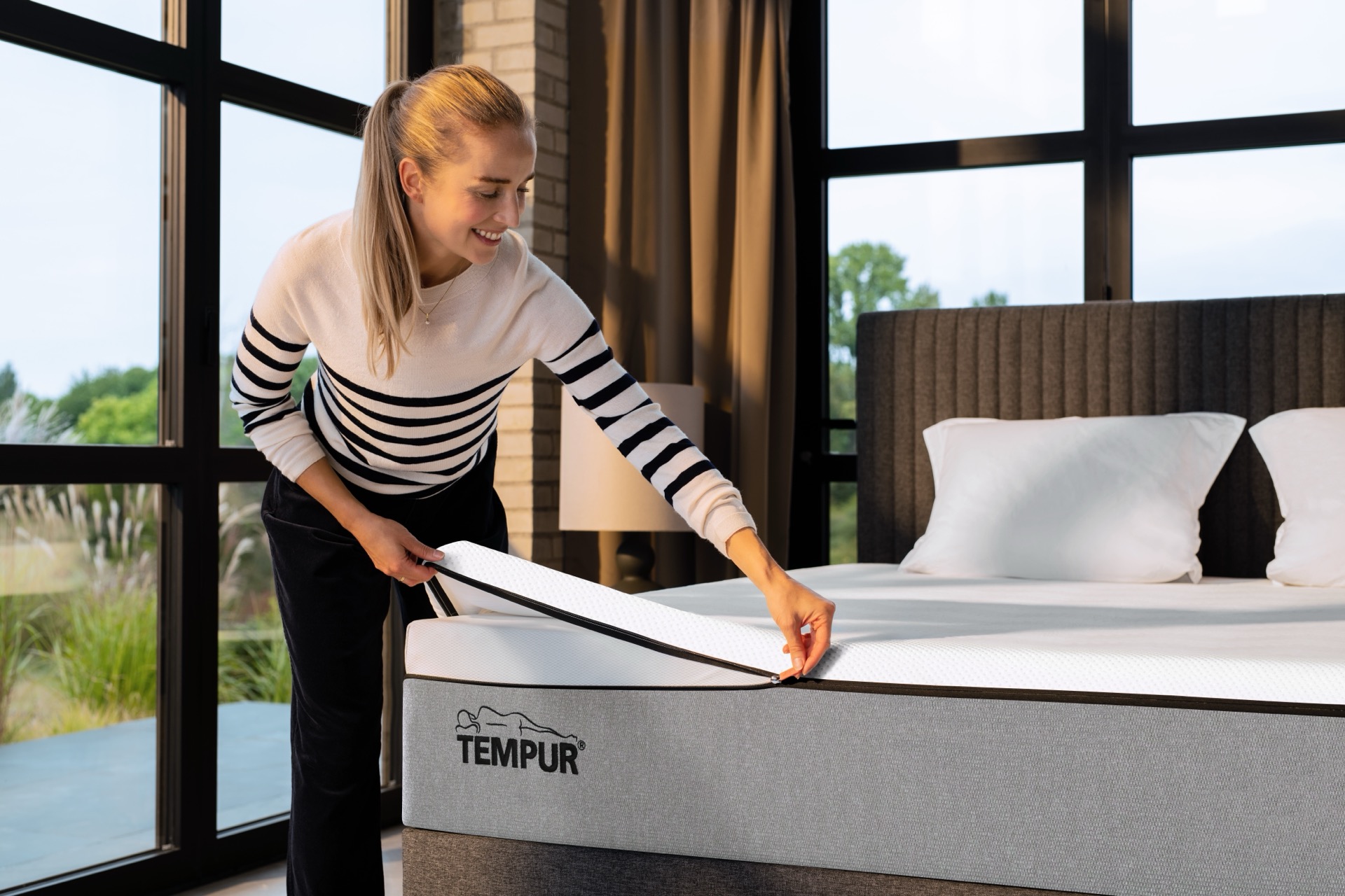 Il futuro del riposo inizia adesso. TEMPUR PRO® SmartCool™ Firm Medium è il modello con feeling medio-rigido della collezione di materassi TEMPUR® SmartCool™. Questi materassi sono composti del materiale TEMPUR® Advanced che allevia la pressione del 20% in più, assorbe di più i movimenti e si adatta al tuo corpo meglio di sempre. Unico materasso con lo strato intermedio di TEMPUR® Dynamic Support, sostiene e permette maggiore libertà nei movimenti. Inoltre, ogni materasso è dotato di una fodera standard QuickRefresh™ che puoi facilmente rimuovere e lavare in lavatrice. Fodera QuickRefresh™: 61% poliestere, 38% polietilene, 1% elastan, lavabile a 40°C. Fodera sottostante: strato superiore 100% poliestere, tessuto laterale grigio 78% poliestere 22% poliestere riciclato, strato inferiore 100% poliestere riciclato, lavabile a 60°C, fodere adatte all'asciugatrice.